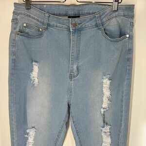 Women's 3X Straight Leg Jeans B.O.B Light Wash Distressed