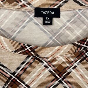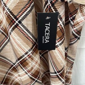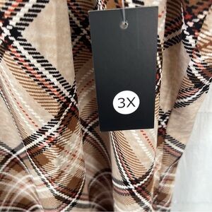 Women’s 3X Tacera Plaid At The Knee Dress NWT Brown White Orange. Care tag mentions necklace but, no necklace included.