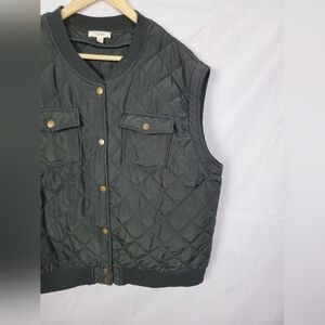 Women's 3XL Black Quilted Vest with Gold Buttons