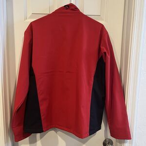 The jacket is available in a striking red and Black color with a solid pattern, and is machine washable for easy care. The jacket is waterproof and breathable, making it perfect for fall, winter, and spring seasons. The logo accents add a touch of sophistication to the basic jacket style, making it suitable for both casual and formal occasions.