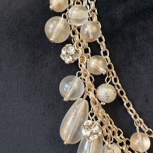 Womens 4 Strand Beads Teardrop Stone Rhinestone Dangle Drop Necklace w/ Lobster.