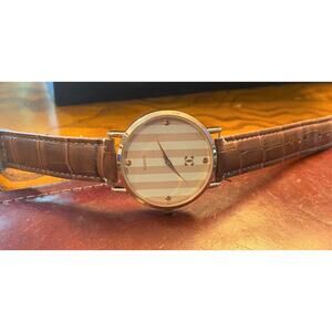 Women's 40mm Gold Tone Charming Charlie Watch, Tan Striped Face