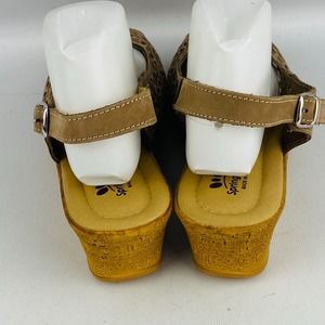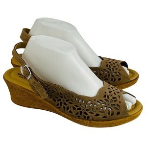 Womens 42 US 10.5-11 Spring Step Wedge Heel Sandals Tan Leather Floral Cutout