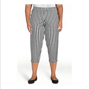 Womens 4 Way Stretch Mid-Rise Woven Gingham Capri Pants