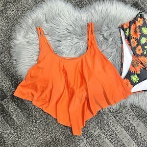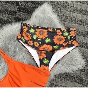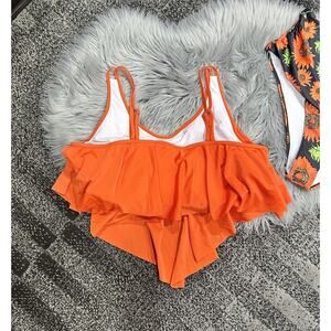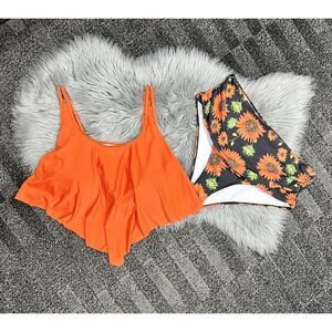 Womens 4XL Plus Sized Two Piece Ruched Orange Tankini Sunflower Swimsuit NEW