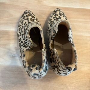 Women's 5.5 Faux Fur Leopard Cheetah Ankle Bootie Animal Print Almond Toe Boots