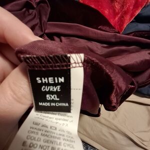This Women's 5XL PLUS Burgundy Velvet Maxi Dress by Shein Curve is the perfect choice for those who embrace a boho, lagenlook style with a touch of fairy cottagecore. The dress features a solid red color with long sleeves, making it a versatile piece that can be dressed up or down. The whimsical theme, inspired by characters like Belle, Princess, and Stevie Nicks, as well as fantasy elements like hobbits and fairies, adds a touch of magic to the dress. With its long length and elegant design, this dress is sure to make a statement and transport you to a world of romance and practical magic.