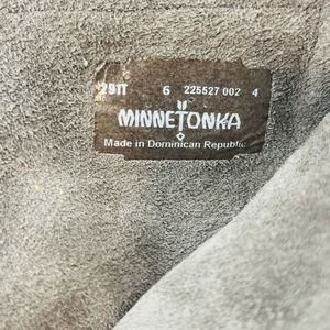 Womens 6 Minnetonka Moccasin Boots Gray Suede Fringe Back Zip High Top Medallion