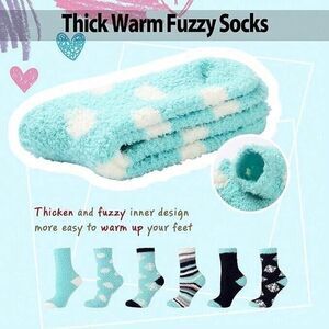 Women’s 6 Pack Fuzzy Warm Slipper Socks Soft Plush Winter Cozy Size 9-11