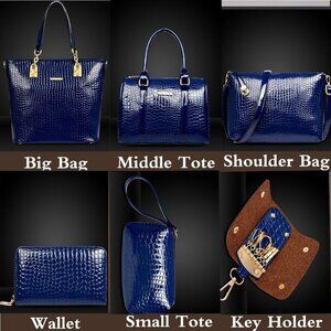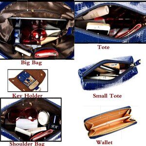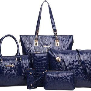 Womens 6 Pcs Handbag Set Clutch Top Handle Totes Satchels Crossbody Bag Wallet