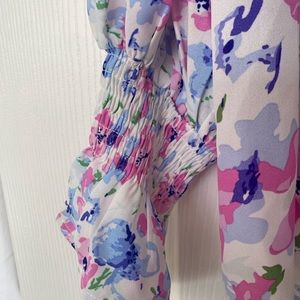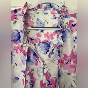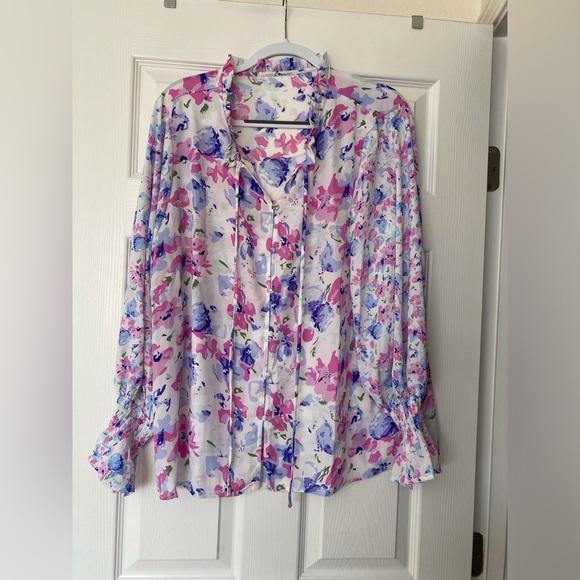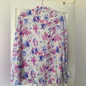 Women's Casual Boho Floral Print V Neck Long Sleeve Drawstring Tops Loose Blouses Button Down Shirts