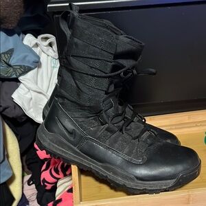 Durable and stylish women’s black tactical boots. Perfect for outdoor adventures and everyday wear. Nike special field systems SFS.