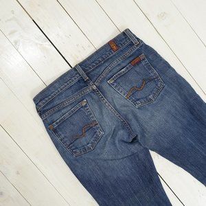 Women’s 7 For All Mankind Bootcut Blue Denim Jeans. Jeans are in very good pre-owned condition. Fraying on cuffs. No tears or stains.