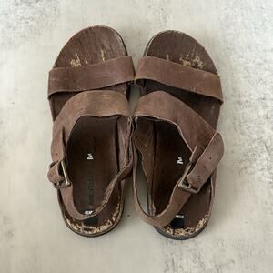 Womens 7 Merrell Around Town Back Strap Sandals Brown Leather Slingback Casual