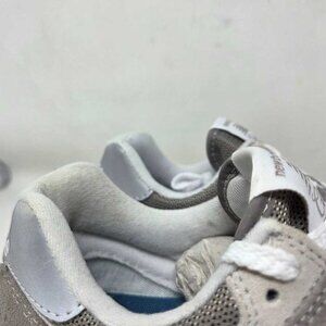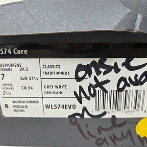 DESCRIPTION: 574 Sneakers in Gray / White. Please note that the box is pretty beat up. One of these shoes was a floor model - the white fabric around the ankle has gotten dingy on one shoe. Please see pics.