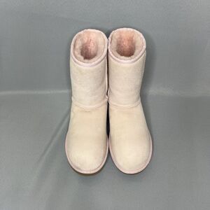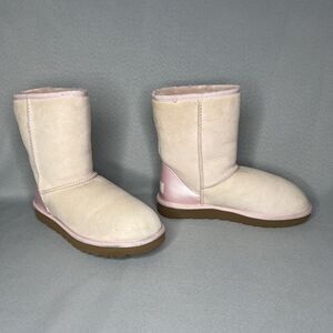 Womens 7 UGG Boots Classic Short Metallic Seashell Pink Suede Wool StoresSoldOut