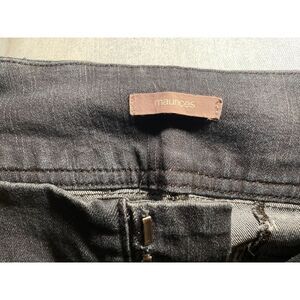 These are Maurices Women's 70's Flare Dark Wash Jeans in Size 9/10 Long. The jeans feature a solid pattern, a zip and hook & eye closure, a dark wash, a 31-inch waist size, and a denim fabric type. They have a flared style with a 8.5-inch rise and a 31.5-inch inseam. The jeans are made of cotton and cotton blend materials, with a 5-pocket design and are machine washable.
