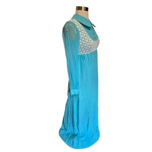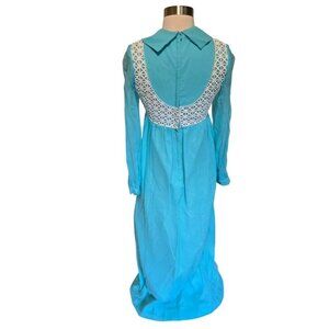 Womens 70s Vintage Blue Maxi Dress Peter Pan Collar Long Sleeve