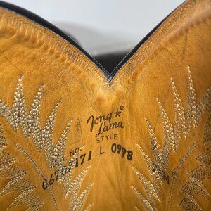 Women's 7.5 Cowboy Boot. These boots are in good vintage condition and they are truly a signature representation of the hand made Tony Lama Vintage boots. The boots have some wonderful detail and the leather is in wonderful condition. The boots are well conditioned and polished and there is plenty of life left in these boots. There has been some work on the toes and heels of the sole of both boots, please see pictures for details.