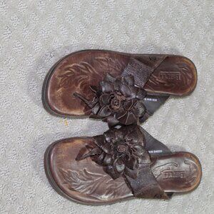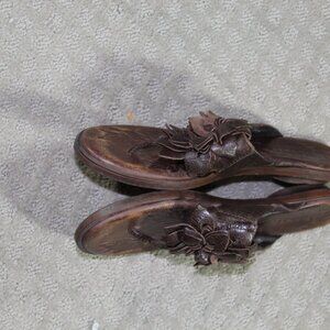 Women's 8 Born Brown Leather Flower Embellished Thong Sandals