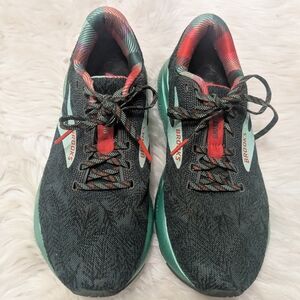 Stylish Brooks running shoes in black and teal. Perfect for active wear.