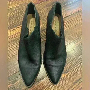 Women’s 8.5 M Lucky Brand Tabea Black Leather Pointed Toe Ankle Booties Shoes