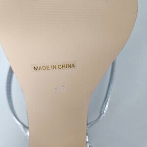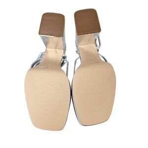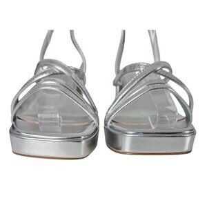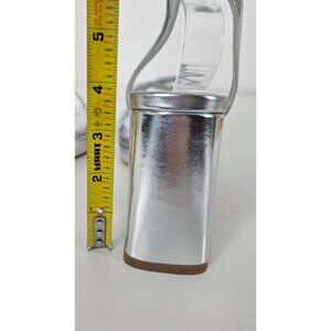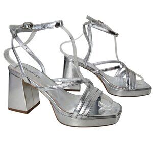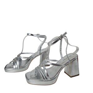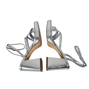 Womens 8.5 Silver Block Heel Sandals Strappy Adj Ankle Strap Party Wedding Sexy