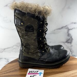 Women’s 8.5-SOREL Camo Print Tofino II Waterproof Snow Boots Faux Fur Insulated