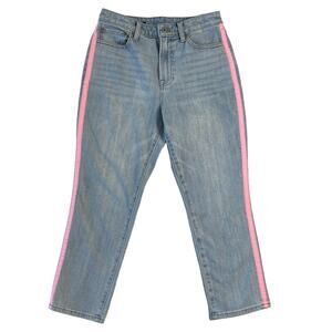 Picturing the unique light wash Ankle Jeans with a Pink Side Stripe Size 8P.