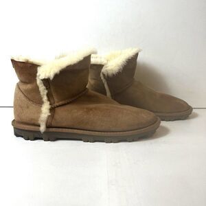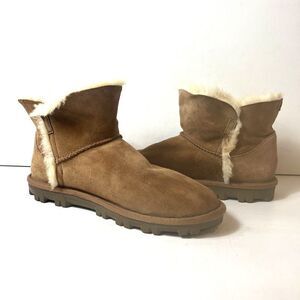 Womens 9 Kirkland Signature Ankle Boots 100% Shearling Wool Lining Brown Suede