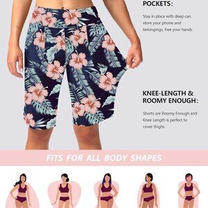 Features: These relaxed knee-length shorts are perfect for swimming, kayaking, or just lounging by the pool. They have a flattering high-waisted, wide waistband that offers full coverage and a comfy fit, plus built-in briefs for support. The deep pockets are a great way to keep your essentials and stay hands-free, with drain holes for quick drying. Made from a chlorine-resistant, stretchy, quick-drying fabric, they keep you cool and dry all day.
