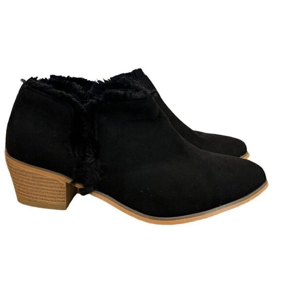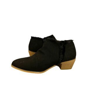 Women's 9 M Black Faux Suede Ankle Booties Soft Cushion Wedge Pull On Shoes