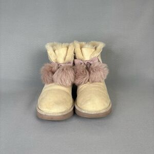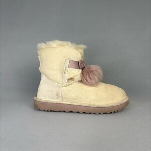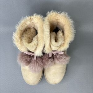 Women’s 9 Ugg Boots Gita Powder Cream Purple Pompoms gorgeous retired Has Wear