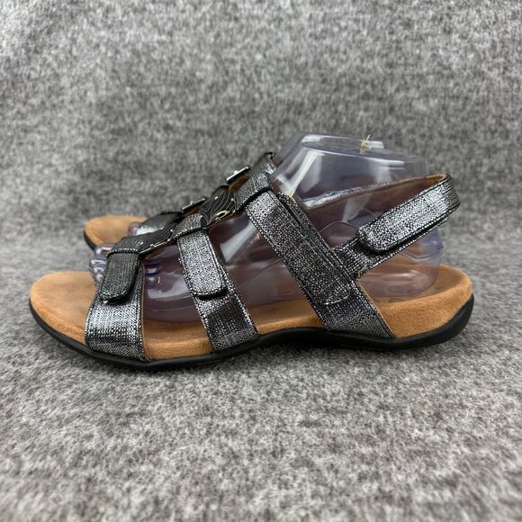 ✅ Womens 9 Vionic Amber Back-Strap Sandals Black Metallic linen Orthotic Support