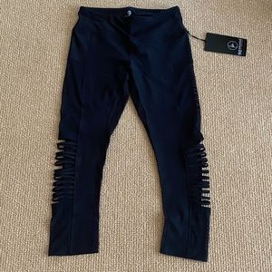 The item for sale is a pair of Women's 90 Degree By Reflex black leggings w/ cutouts and mesh on sides of the leggings style #: CW65880. The leggings are size small and are brand new!