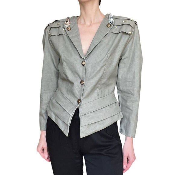 Women's 90’s Olive Green Blazer with Embellished Shoulders