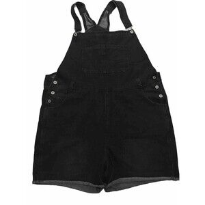 Women’s 90s Y2K Denim Overall Shorts XL Black Shortfall Romper Grunge Whimsygoth