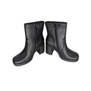 Womens 90s Y2K Goth Fairy Grunge Chunky Block High Heel Square Toe Zip Up Ankle Boots