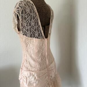 Women’s 9/10 Dress Blush Lace Tiered Party 1950s Illusion Neckline Drop Waist