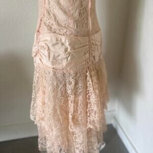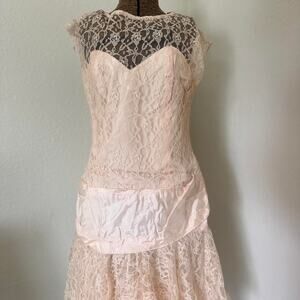 Women’s 9/10 Dress Blush Lace Tiered Party Dress 1950s Illusion Neckline Drop Waist Vintage