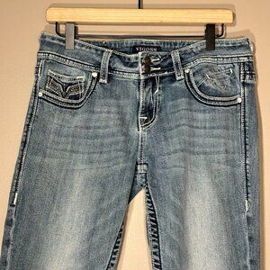 Women's 9/10 Vigoss "The New York Slim Boot" Mid Rise Jeans Embroidered Pockets