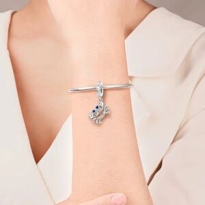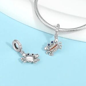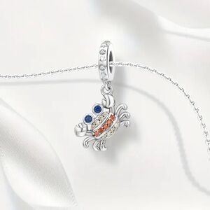 Women’s 925 Silver Sparkly Crab Charm with Blue and Orange Gems - NWT