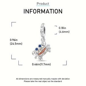 Elegant silver crab charm featuring blue and orange accents. Perfect for adding a nautical touch to your jewelry collection.