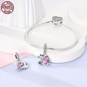 Women’s 925 Sterling Silver Snail Charm with Pink and Green Accents - NWT