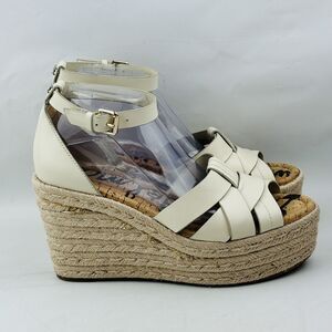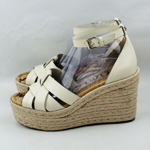 Womens 9.5 Sam Edelman Marietta Platform Espadrille Sandals Ivory Leather Wedge