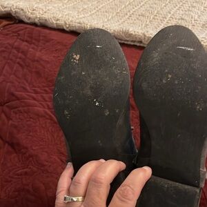 Women’s size 9 1/2 suede field gray boots zipper side lace front for adjustable fit small amount of wear on the heel otherwise in great used condition.