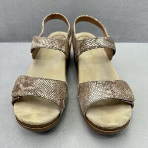 Womens 9.5-10 / EU 40 Dansko Sonnet Sandals Tan Leather Snake Print Adjustable