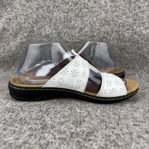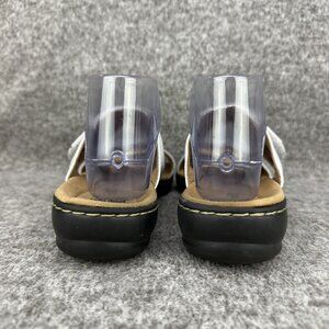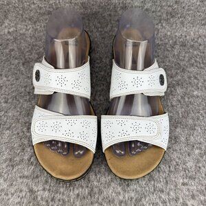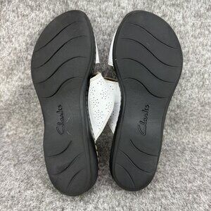 ✅Womens 9M Clarks White Leather Sandals Adjustable Straps Cushion Casual Comfort