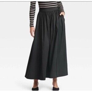 Women's A Line Pleated Voluminous Maxi Skirt - A New Day Black XL