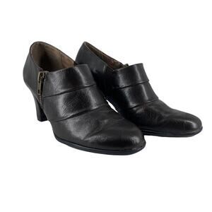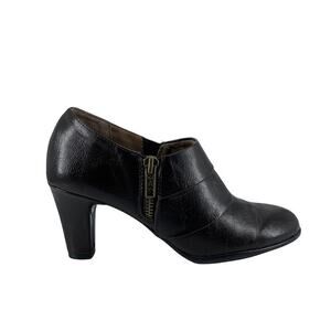 AEROSOLES Memories Dark Brown Bootie with Heel. Size 6. Side zip. Memories style. All man made materials. Excellent pre-owned condition.